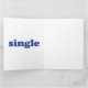 Cartão branco com letras azuis "solteiro"