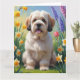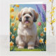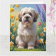 Cartão Lhasa Apso Cão Pintura de Flores da Primavera