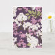 Padrão de flores lilás brancas e lavandas em fundo roxo para o aniversário. O texto dentro é editável.