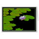 Lily Pads e uma flor florescente flutuam na água de um lago.