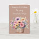 Celebre sua esposa maravilhosa com este lindo cartão de aniversário floral de gerbera! Burst com flores vibrantes, esta carta é a maneira perfeita de dizer "Parabéns" à sua bela esposa. Personalize-o com uma mensagem sincera que mostra a ela o quanto ela significa para você. Seja uma nota doce ou uma piada dentro engraçada, faça seu dia ainda mais especial com um toque pessoal. Brilhante, alegre, e cheio de amor - como ela - esta carta trará um sorriso ao seu rosto e calor ao seu coração. Mostre-lhe que ela é a luz da sua vida com cada palavra bonita! Cores: flores multicolores/cor principal, castanho