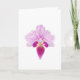 Desenho a lápis colorido de um belo cartão de saudação de orquídea rosa. Perfeito para todas as ocasiões. Vazio na dentro para sua mensagem pessoal. Desenho de Mark Monckton.