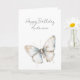 Cartão Lindo Borboleta Branco Azul Floral Aniversário