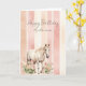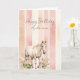 Cartão Lindo Cavalo Rosa Creme Floral Aniversário