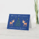 Cartão Lindo cervo com árvore de Natal e estrelas