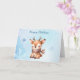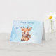 Um lindo cervo de desenho animado vestindo um cachecol xadrez senta-se feliz entre os flocos de neve. As palavras “Felizes Festas” podem ser facilmente alteradas para qualquer mensagem que você desejar. O texto dentro do cartão também pode ser alterado se preferir.