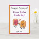 Lindo cartão do Dia Nacional do Sanduíche de Pasta de Amendoim com Geléia. Vamos celebrar o Dia Nacional do Sanduíche de Pasta de Amendoim com Geléia com este adorável cartão de felicitações! Com uma ilustração divertida de um sanduíche de PB&J na frente, ele se abre para revelar curiosidades, fatos e uma piada boba sobre o duo de sanduíches favorito de todos. Perfeito para alegrar o dia de um amigo ou surpreender um fã de PB&J, este cartão certamente espalhará sorrisos (e geléia) por todos os lados. Aproveite a nostalgia doce e compartilhe a diversão no dia 2 de abril!