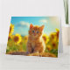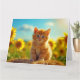 Cartão Lindo Gatinho Ruivo em Campo de Girassóis