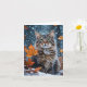 Cartão Lindo Gato Tabby Cinza Outono Folhas em Branco