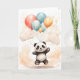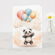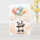 Cartão Lindo Panda Aquarela Balões Amarelos Azuis Fundo B