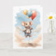 Cartão Lindo Rato Aquarela Flutuando com Balões em Branco
