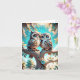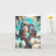 Lindas corujinhas kawaii chibi juntas em um galho de árvore decoram este cartão de cumprimentos em branco.