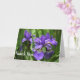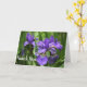 Este cartão de agradecimento foi criado a partir de uma fotografia de íris roxos florescendo em um jardim de flores. Um cartão adorável para ser usado para dizer obrigado por um presente. Há uma saudação interna que você pode personalizar com suas próprias palavras.