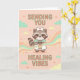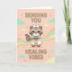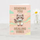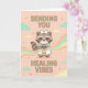 Cartão de Lindos Mapache Enfermeira Enviando Vibrações de Cura, Presente de Melhoras, Cartão de Gráficos Médicos Kawaii.