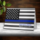 Design clássico da bandeira da polícia para este cartão de saudação. A mensagem padrão é "recupere-se logo", mas você pode facilmente alterá-la para feliz aniversário, parabéns, feliz aposentadoria, parabéns pela promoção ou qualquer outra saudação.