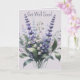 Este cartão apresenta uma ilustração de flores de lírio-do-vale e lavanda com uma saudação editável acima dele. No interior há uma mensagem editável. Você pode alterar as mensagens ou excluí-las para criar um cartão em branco. Você também pode alterar o estilo, tamanho e cor da fonte. A cor do fundo em todos os lados também pode ser alterada. Este cartão de cumprimentos versátil pode ser usado para aniversários, condolências, pensando em você, cartões de agradecimento, etc.