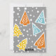 Modelo liso do cartão da foto moderna colorida das árvores de Natal, caracterizando árvores de Natal abstratas coloridas na turquesa, o amarelo alaranjado, os flocos de neve no fundo cinzento, o texto "paz, o amor, a alegria" e as três fotos de sua família. Personalize-a com seu texto. Um cartão moderno para enviar os cumprimentos da sua estação do Natal.