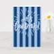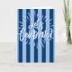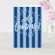 Irradiando energia e charme, este cartão comemorativo apresenta uma escrita à mão que irrompe de um surto de raios pictóricos. Contra as listras azuis índigo da assinatura Prentiss Barr, é uma maneira alegre e elegante de marcar qualquer ocasião feliz. Perfeito para aniversários, noivados, promoções - ou qualquer motivo para levantar um copo.