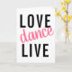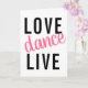 Uma simples declaração ousada de Love Live & Dance em tipografia a preto e rosa.