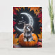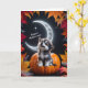 Cartão Lobo Branco Fofo com Lua Crescente Noite Outono