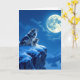 Cartão Lobo e filhote Howling no Aniversário da Lua