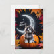 Cartão Lobo Fofo com Lua Crescente Noturna de Outono