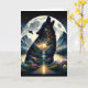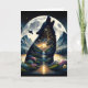 Cartão Lobo Místico Howling no Surreal da Lua Aniversário