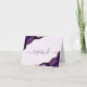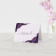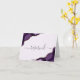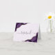 Este elegante cartão de lugar reservado para mesa de casamento moderno apresenta uma imagem de agata púrpura, aparada com brilho dourado em cantos opostos. A palavra "reservado" aparece no guião de escrita de cinzas de carvão com balsas antes e depois num fundo de lavanda em ambos os lados do cartão.