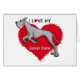 Deixe que todos saibam que você AMA seu Grande Dane (orelhas cortadas) com este grande dane vermelho e saltando com o texto "Eu Amo Meu Grande Dane" de Danes-R-Us.