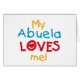 Minha Abuela me ama T-shirts, cartas, adesivos, bolsas de fôlego, e mais com texto vermelho, amarelo e azul colorido e design cardíaca. Estes Abuela me ama roupa e os itens de presentes farão sua abuela sorrir!