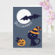Cartão Lua Com Bat Pumpkin E Gato Vestindo Um Chapéu De B