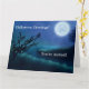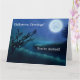 Cartão Lua de Halloween à noite em tons de azul e verde