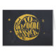 Um cartão de saudação caprichosa para expressar seu amor e afeto. A frente diz: Eu te amo na lua e de volta. O dentro diz: apenas uma pequena nota para te avisar...Você arranca meu mundo! A frente do cartão é um design colocado sobre uma textura preta de quadro negro com uma lua de lua de ouro fofa e peculiar e algumas estrelas.
