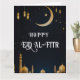 Cartão Lua Elegante Blue & Dourada Eid Al-Fitr Crescent