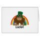 Rua sortuda do Patrick, duende-pé-grande com um arco-íris no fundo