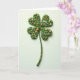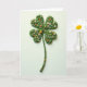 This design shows a four-leaf clover centered on a soft green background, with each heart-shaped leaf packed with deep green moss that looks like a tiny forest floor 💚. The clover’s surface is dotted with miniature flowers—small white daisies, bright orange blooms, and little blue florets—nestled among fresh sprouts and extra leaves. Gentle, diffused light smooths out the shadows and makes the moss and petals look softly raised, like you could brush them with a fingertip. The close, careful arrangement of the tiny blossoms feels like a sweet shared secret between friends, tucked into the greenery ☘️. There’s no visible border, so the clover stands out clearly against the airy backdrop. No text appears on the front, leaving open space around the clover for a message inside. The stem curves downward in the same mossy texture, sprinkled with a few small blooms that trail along its arc.