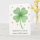 This design shows a large four-leaf clover painted in soft green washes, with heart-shaped leaves that lean toward each other like close friends sharing a quiet moment 💚. Fine vein lines radiate from the center, giving the leaves a gentle, lived-in look. The clover sits centered on a bright white background, making the green stand out without feeling loud. All around it, tiny gold stars are scattered like sprinkled confetti, catching the eye with a glittery look ☘️. The stars float loosely above and to the sides, as if drifting in a light breeze around the clover. Near the bottom, the message “SENDING YOU LOTS OF LUCKY WISHES TODAY!” appears in a friendly black hand-drawn style, stretching across the width and anchoring the page. The overall layout keeps plenty of open space, with the green clover in the middle and the gold stars dotted around it on the white field.