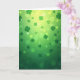 This card features a vertical field of three-leaf clovers drifting across the page, like a quiet shower of lucky finds shared between close friends 💚. Dark green shamrocks in many sizes float at different angles, giving the scene a gentle sense of movement without a single main character. The background fades from a bright yellow-green near the top to a deeper emerald toward the bottom, like light settling through leaves at dusk. Soft, out-of-focus circles in green and gold hover around the clovers, adding the kind of glow that feels like an inviting glance held a moment longer ☘️. The sharper clover shapes against the misty circles create a tender contrast, as if the air itself is humming with friendly warmth. A short St. Patrick’s Day greeting sits near the top in light lettering, easy to spot against the lighter gradient, with a smaller line of text placed near the bottom in a pale green. Share St. Patrick’s Day sentiments with someone you care about, and let the scattered shamrocks and glowing bokeh dots fill the frame from top to bottom.