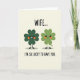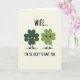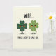 This card shows two four-leaf clovers standing close together on a creamy off-white background, their tiny black stick-legs and little feet casting faint shadows beneath them. The clover on the left is a deeper emerald green with a wide smile and bright orange blush on its cheeks, leaning in as if caught mid-giggle. Beside it, a lighter lime green clover wears a smaller grin with rosy cheeks, meeting its partner with a tender, knowing look that suggests easy friendship and love 💚. At the top, the word “WIFE...” appears in black, set above the characters like a gentle headline. Under the clovers, the message “I’M SO LUCKY TO HAVE YOU.” is placed in uppercase black lettering, centered and spaced to feel calm and steady ☘️. The limited colors—fresh greens, orange cheek blush, and black details—keep the focus on their expressions and closeness. The two clovers differ slightly in shade, with the darker one on the left and the lighter one on the right, both outlined simply against the pale backdrop.