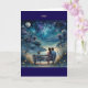 Cartão de anotação que é vazio com dentro noturno de uma família sentada ao fundo do mar sob a luz da lua. Inteligência artificial com edição.