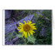 Esta foto mostra um girassol com fundo escuro. A placa está no vazio. Personalizável.