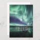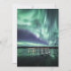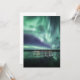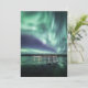 Fotografia artificial das luzes Nortes (Aurora borealis) refletindo num fiorde na costa do Norte da Noruega, Escandinávia.