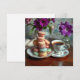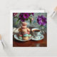 Cartão Macaron, Coffee and Vase of Purple Flowers