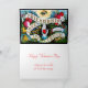 Este cartão de cumprimentos dobrável personalizável da Maçonaria vitoriana vintage é uma cópia de um original restaurado por Currier e Ives, Nova York, publicado pela primeira vez em 1874. Este design romântico apresenta a divisa "Amizade, Amor e Verdade" e inclui um olho que tudo vê, simbolizando o olho benevolente da providência, rosas vermelhas românticas do amor, uma corrente de amantes ligados, duas mãos dadas de amantes, uma colmeia de abelhas que simboliza o trabalho em equipe e um feixe de gravetos, que é um símbolo romano antigo que significa "nós estamos juntos".