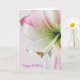 close up extremo da flor do amaryllis no fundo do rosa pastel para o aniversário