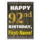 Cartão Madeira Faux, Faux Dourado 92º Aniversário + Nome
