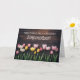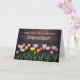 Madrasta ou enteada, como você preferir, também pode alterar o texto da capa, fonte e cor. Linda cartão do dia das mães com bulbos de primavera e fundo de madeira country.