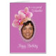 Um cartão de aniversário para uma madrinha. As orquídeas simbolizam o amor, o luxo e a força — qualidades que refletem a beleza do seu espírito. No seu aniversário, desejo que seu dia seja tão requintado e inesquecível como essas florescências. Adicione sua foto para criar uma carta única, especialmente para ela.