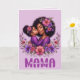 Capture a essência do amor com nosso deslumbrante cartão do Dia das Mães com filigrana floral rosa e roxa. Apresentando uma ilustração emocionante de uma jovem mãe afro-americana e sua adorável filha pequena, vestidas com roupas roxas combinando, compartilhando um beijo doce na bochecha. Perfeito para mães, mães adicionais, mães adotivas, este design incorpora o tema da primavera de renovação e amor. ©2024 Miss Sassy Party Designs