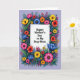 Concebido com uma borda floral vibrante, este cartão centra um painel retangular branco que atrai os olhos diretamente para a mensagem. O texto principal está no meio desse painel em letras pretas, com bastante espaço ao redor para uma sensação calma e afetuosa ❤️. Ao redor do painel, um anel denso de flores e folhagens estilizadas inclina-se para dentro como um abraço amigável, sugerindo proximidade e cuidado. Flores em fucsia, amarelo ensolarado, laranja, azul profundo e vermelho são delineadas em preto com sombreamento leve que lhes dá uma aparência suavemente pintada. Folhas verdes se entrelaçam entre as flores, e pequenos aglomerados de bagas rosa e laranja se escondem nos espaços como pequenos segredos compartilhados 🌼. O fundo é um tom lavanda suave que faz as pétalas brilhantes se destacarem sem parecerem ásperas. Faíscas minúsculas em forma de explosão de est